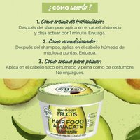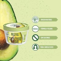 Fructis Hairfood con palta para pelo seco. Máscara de nutrición 1 minuto 98% de Ingredientes de origen natural Con palta y proteína de fruta.